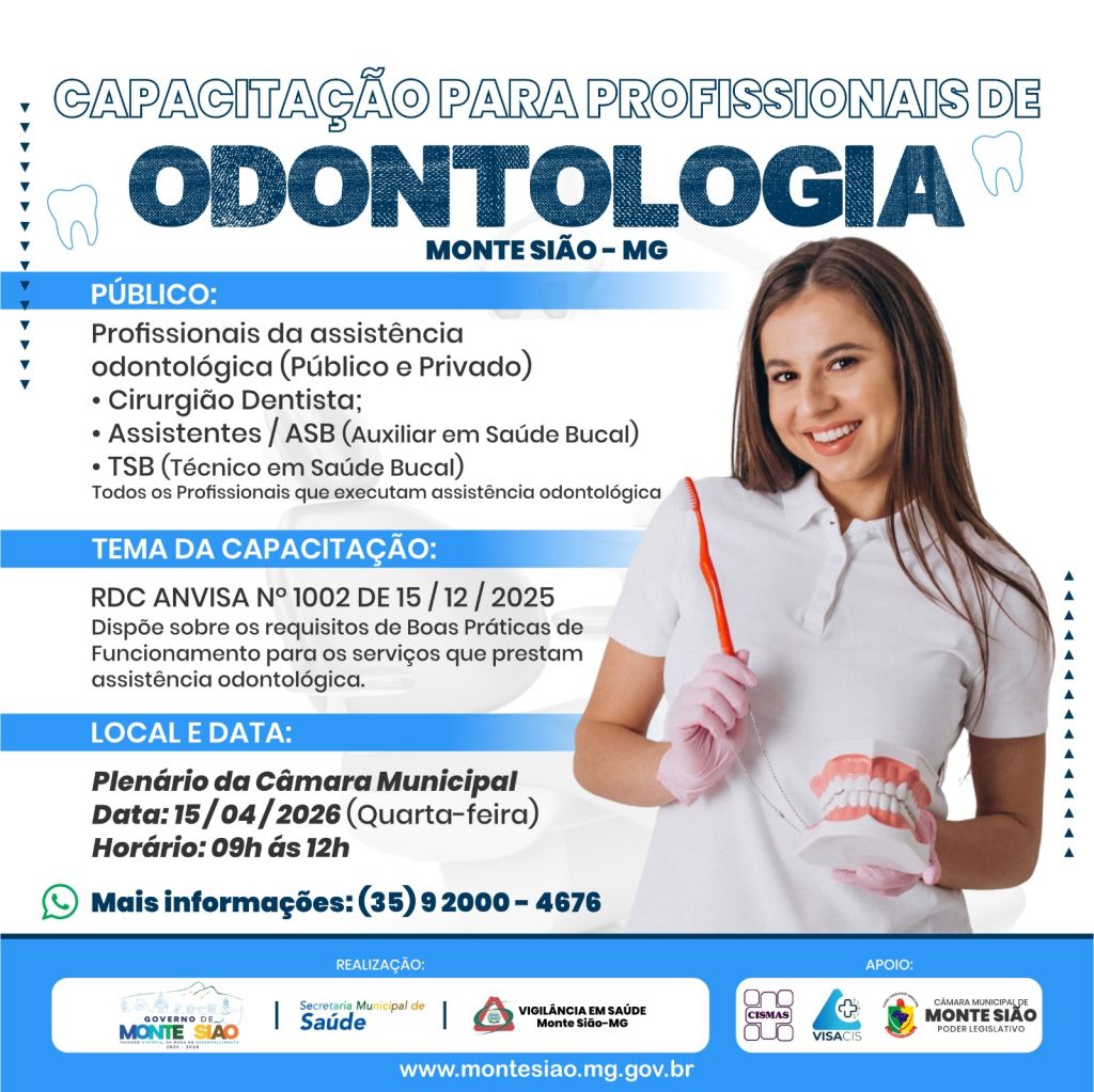 A Prefeitura de Monte Sião, por meio da Secretaria Municipal de Saúde e da Vigilância em Saúde, realizará uma capacitação voltada aos profissionais da área de odontologia do município.
