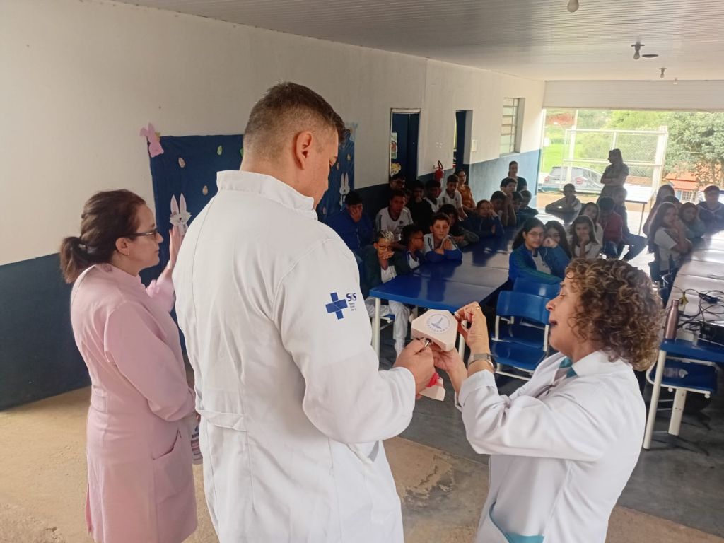 A ação contou com a equipe de dentistas da saúde bucal municipal, formada por Dra. Carla Barichello, Coordenadora de Saúde Bucal de Monte Sião, Dra. Alessandra, Dra. Virgínia, Dra. Viviane e Dr. Douglas.